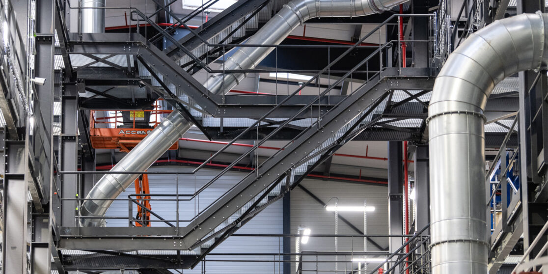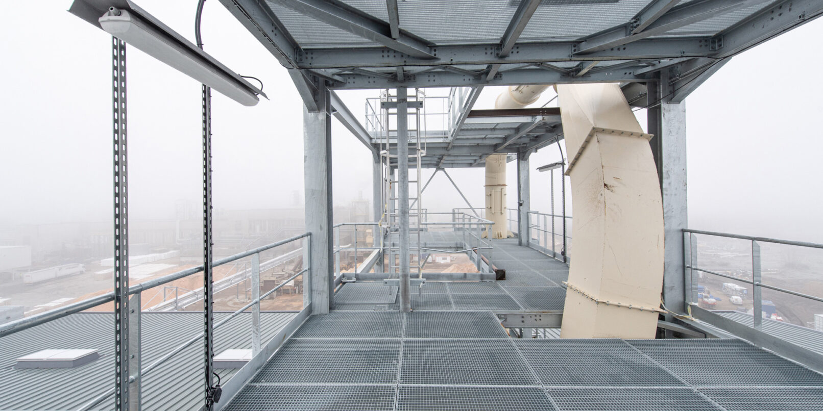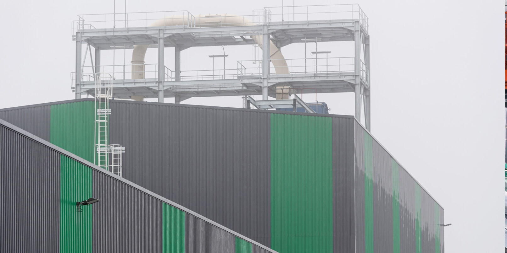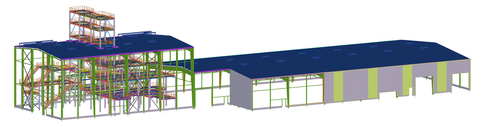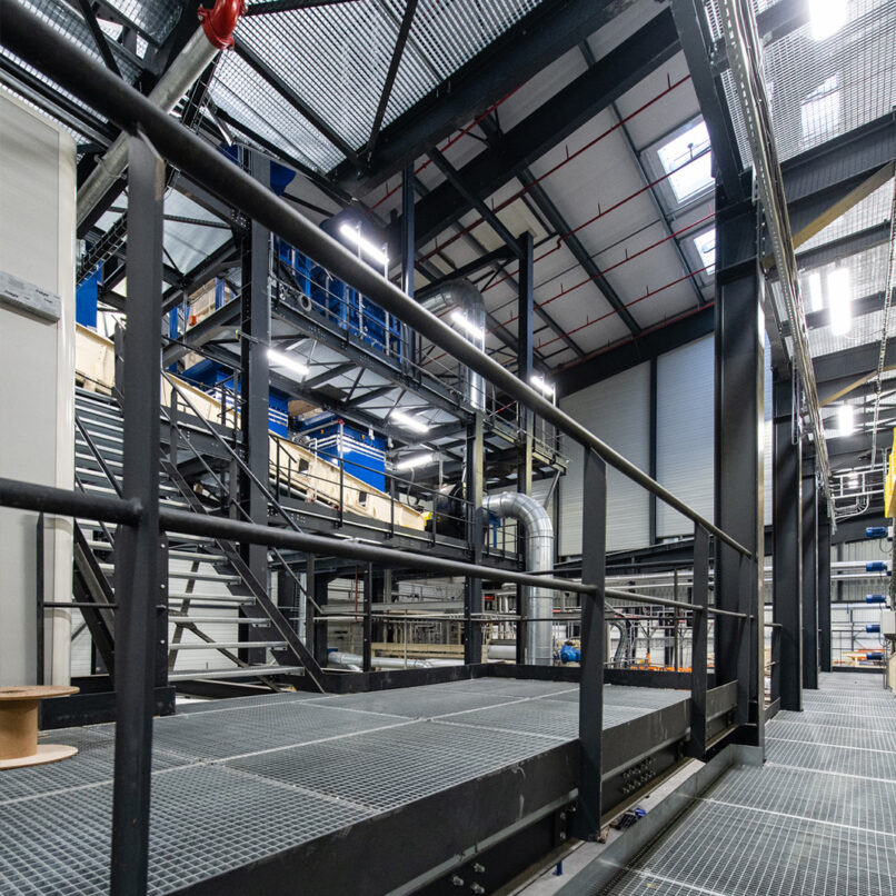 Rénovation et construction de bâtiments et tour de process d’un site de production d’isolants fibre de bois.