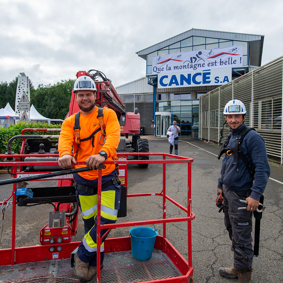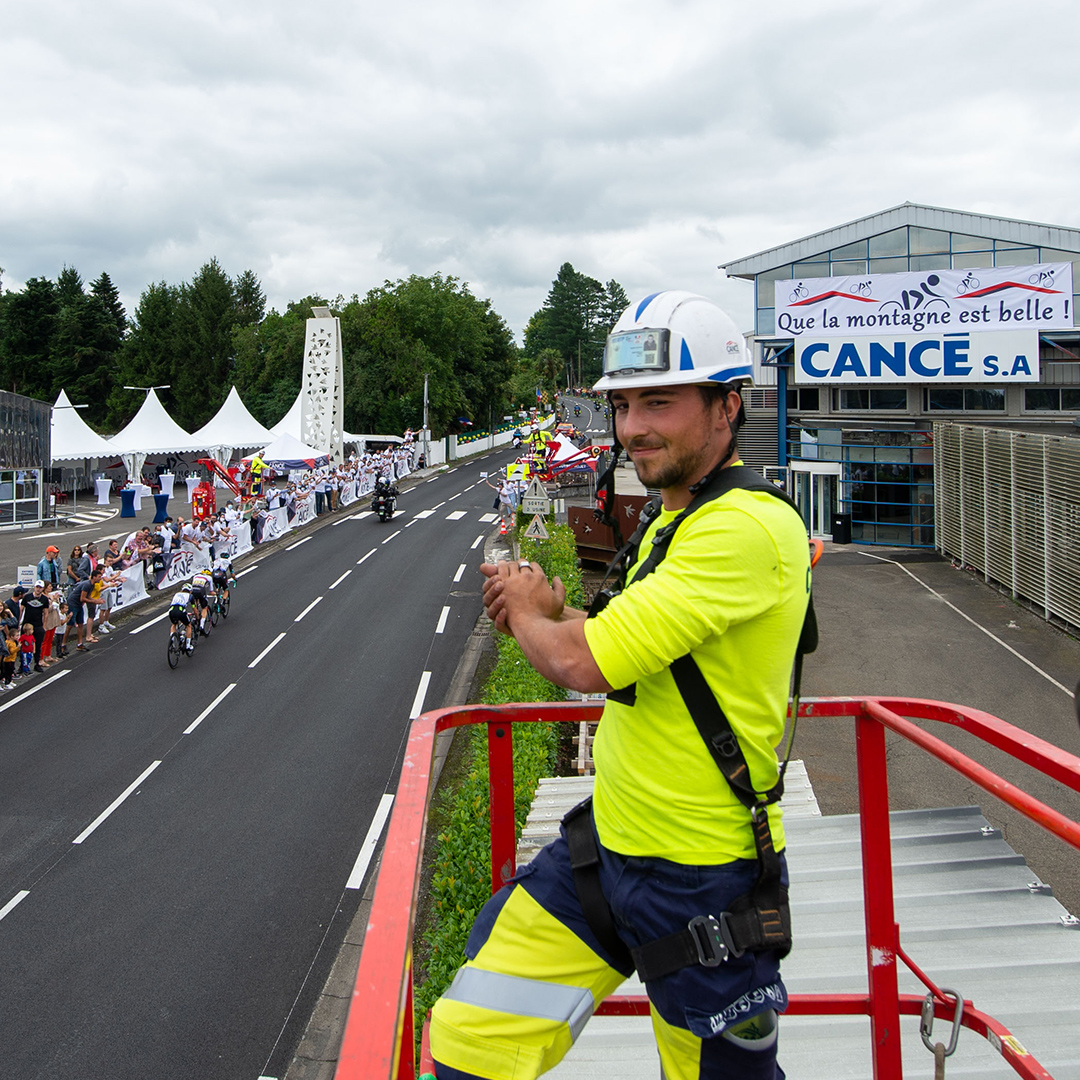 L’ambiance est à son comble au passage du peloton devant le siège. La ferveur et le soutien se font entendre de la part des collaborateurs CANCÉ tous services confondus: bureau d’études, services administratifs et comptables, ateliers, monteurs et direction. Un moment intense et inoubliable car le chemin de la Montjoie et CANCÉ sont rentrés à ce moment-là dans l’Histoire du Tour de France…