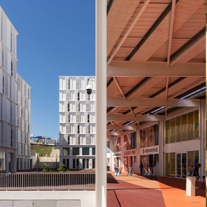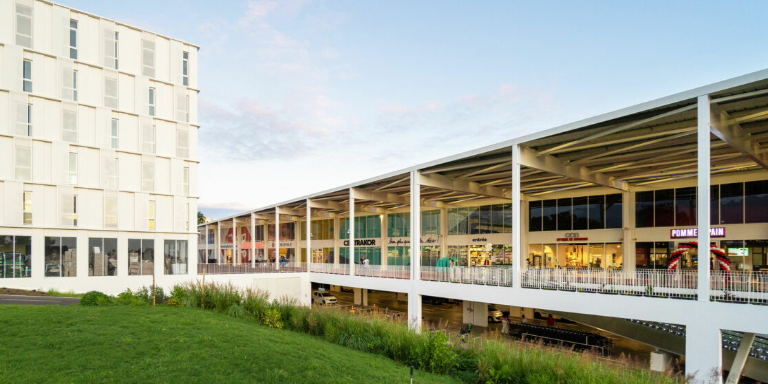 Centre Commercial – 550T de charpente + 3200m² de plancher collaborant + 12500m² de couverture + 1200m² de bardage + métallerie garde-corps et maille inox