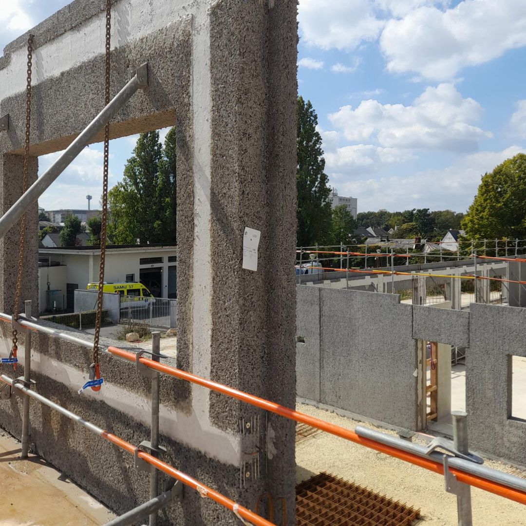 Le chantier du NHP, porté par le CHRU de Tours et le cabinet Sextant Architecture, s’impose comme un cas d’école en matière de construction durable. Son argument central : le béton de bois comme matériau principal pour l’ensemble des murs périphériques. Ce parti pris structurel, déployé sur 8 000 m² de façades, constitue le cœur de la performance environnementale du projet. En réduisant de 50 % l’impact carbone de la construction par rapport au béton traditionnel, le NHP obtient ainsi la certification Bâtiment Bas Carbone niveau excellent.