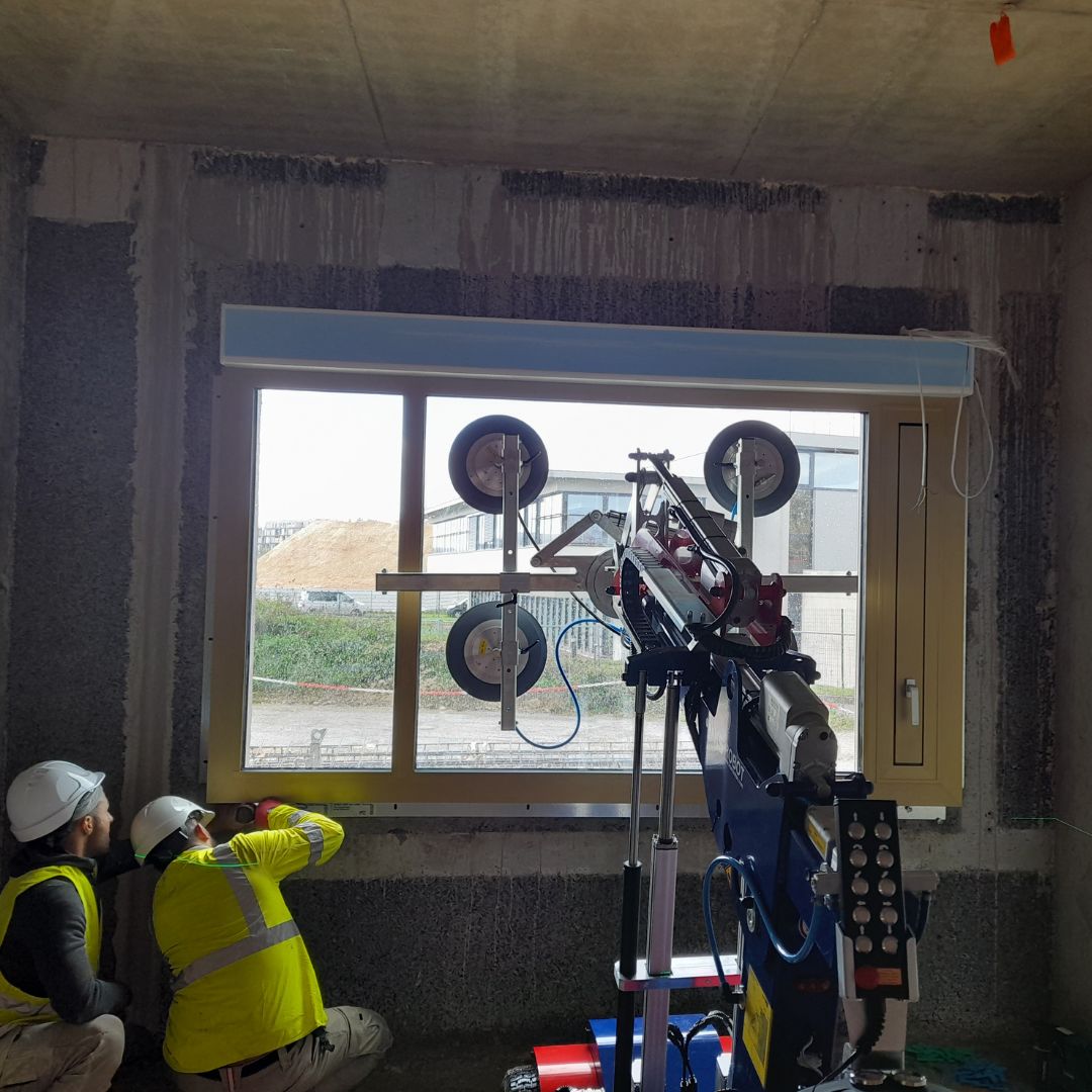Résultat : des temps de mise en œuvre maîtrisés, avec un effectif optimisé. Et compte tenu du volume de menuiseries à poser, les risques de TMS pour les poseurs ont été considérablement réduits.