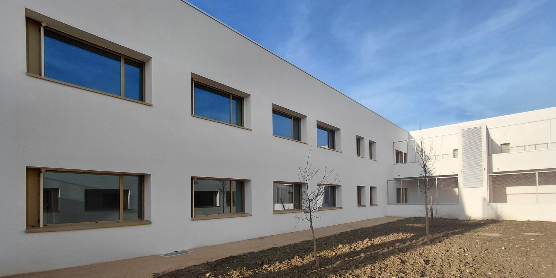 Avant la pose, évoquons la fabrication. Le cahier des charges visait à concilier sécurité, confort et qualité de vie, pour les patients comme pour les soignants. Le bâtiment accueille de ce fait une large variété de menuiseries : La classique, avec un vantail avec allège et ouverture à la française pour les espaces publics et soignants, des ensembles de deux à trois vantaux pour les couloirs et espaces de vie, et des façades vitrées avec ouvrants pour les accès et espaces communs. Tous ces ensembles ont été intégralement assemblés dans l’atelier Alu CANCÉ à Morlaàs (64). Les monoblocs des chambres ont néanmoins représenté le défi le plus exigeant : chacun intègre un châssis fixe et un ouvrant FLAP dont l’ouverture limitée à l’anglaise — assurant également la ventilation naturelle — et la poignée tout en arrondi garantissent l’absence d’éléments saillants dangereux pour les patients, tout en offrant un confort indéniable. Chaque monobloc embarquait en outre un volet roulant extérieur. Assemblés et testés en atelier, il restait à les acheminer sur le chantier.