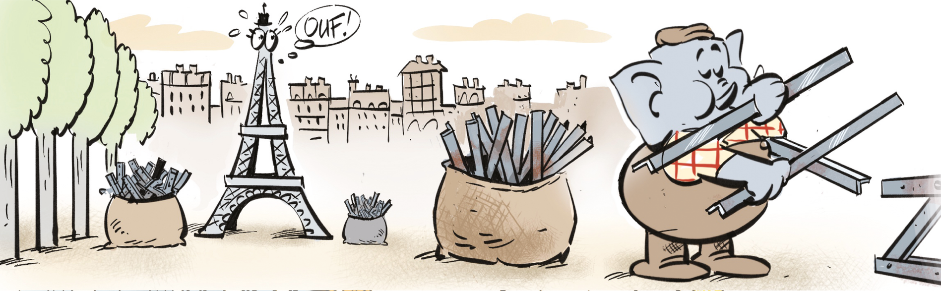 CRICRI a découvert que l’année 2026 célèbre 2 dates importantes : les 140 ans de la construction métallique et les 140 ans du brevet de production industrielle de l’Alu. Plus que jamais motivé par le développement durable, l’idée lui est venue de récupérer toute la matière première disponible, à la ville comme à la campagne, pour inventer de nouveaux bâtiments. Bon promis, il ne touchera pas à la tour Eiffel et autres joyaux en métal toujours aussi beaux, solides et utiles…