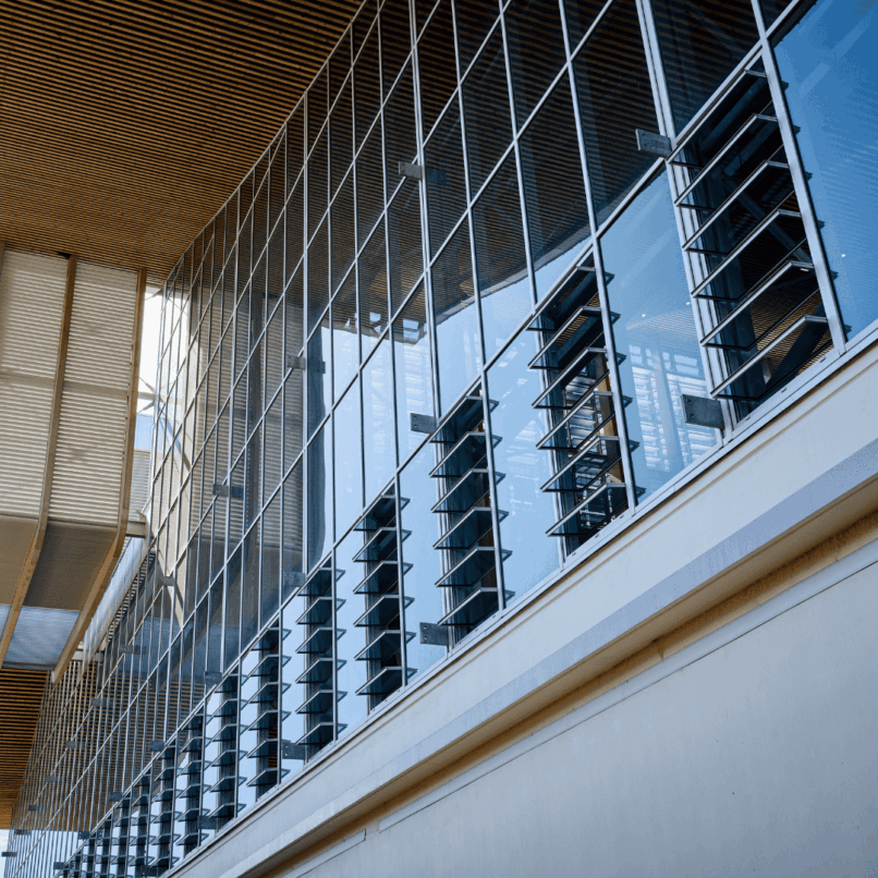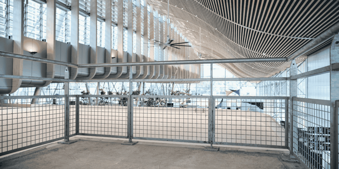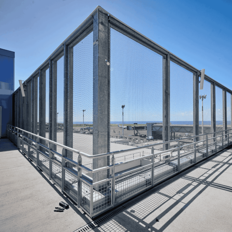 Nouvelle aérogare bioclimatique – 580T de Charpente – 4000m² de Facades rideaux – métallerie garde-corps porte métallique maille inox.