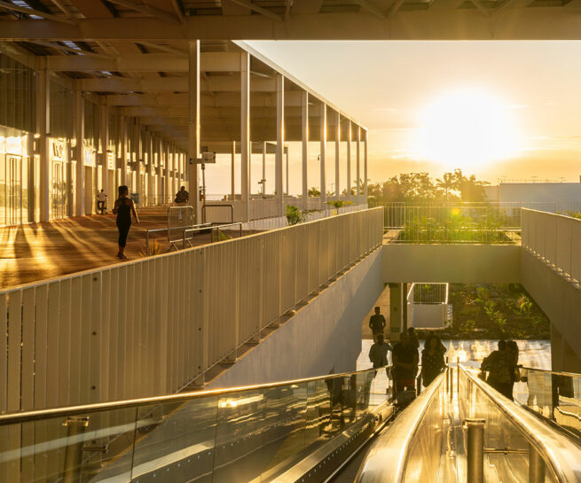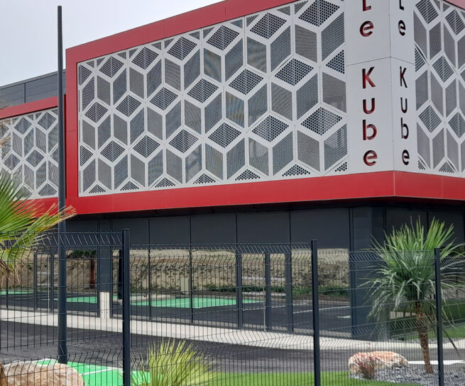 Retail commercial de 5000m² avec auvent décoratif origami en alucobond