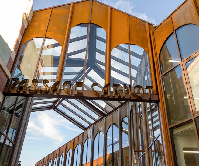 Construction d'une galerie commerçante à Pau avec bardage en acier corten.